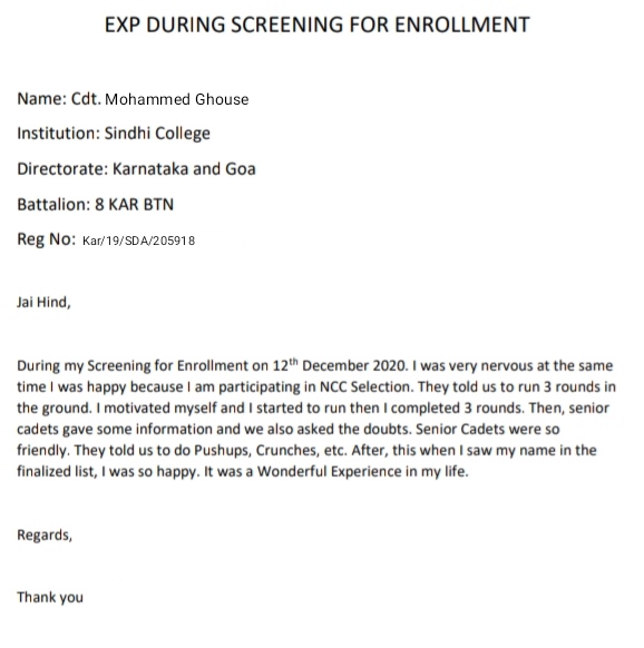I am cdt Swathy Ajayan with cdt no. KL/20/SWA/109364,from 1(k) girls BN NCC.