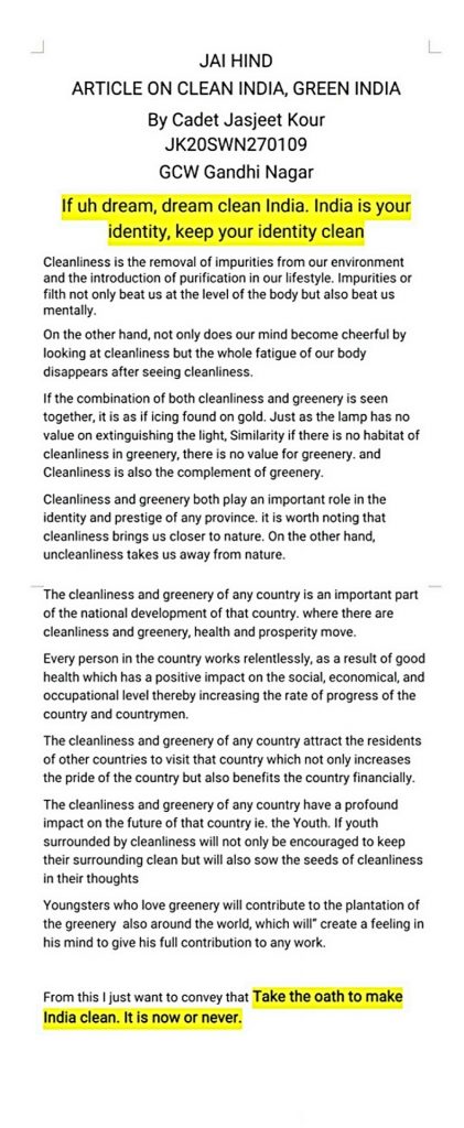 Article on Clean India, Green India