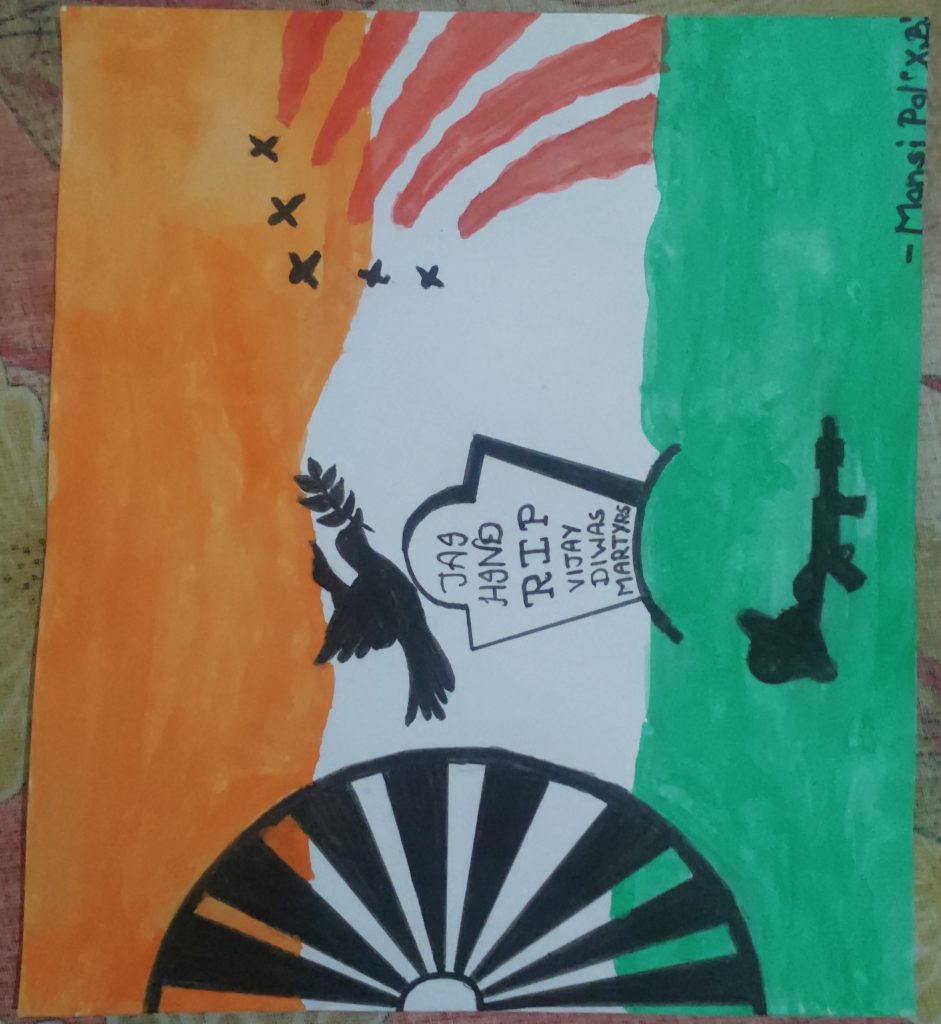 Jai Hind everyone This is cadet Manisha Chauhan from 1 Raj armd sqn. Jaipur , Reg no. -RJ/20/SWA/175236 ... I share my drawing with u which I made in the memory of kagril war martyrs