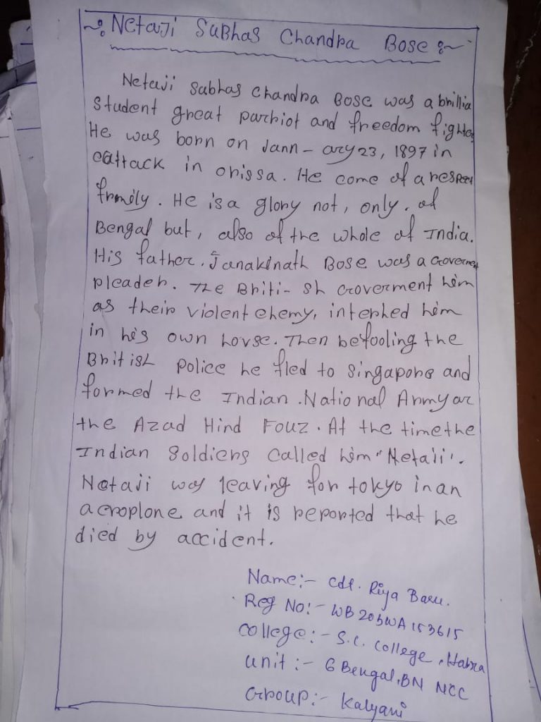 I am CDT Manas Kumar Giri ( Regt no. OD21JDA672089) of Nirmala English School, 9(O)BN NCC, ROURKELA