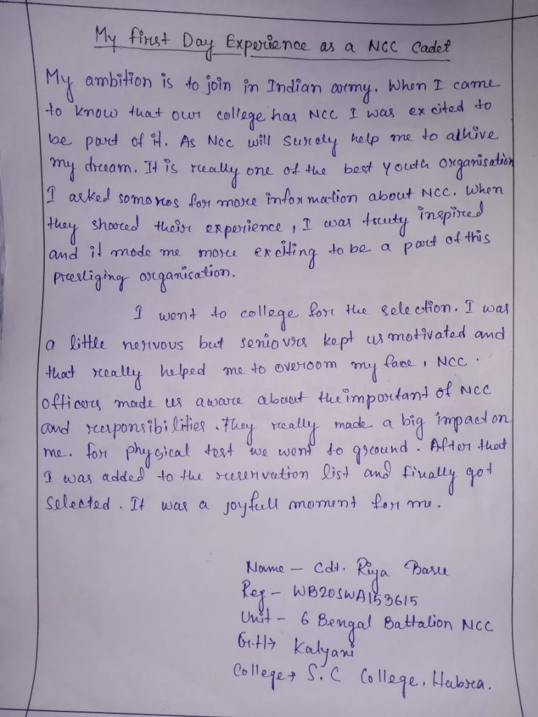 REG. NO : WB21SDA153665 RANK : CDT NAME : Shatadip Roy Chowdhury COLLEGE : NAHATA J.N.M.S.M UNIT : 6 BENGAL BN NCC GROUP : KALYANI DIRECTOR : WB & SIKKIM