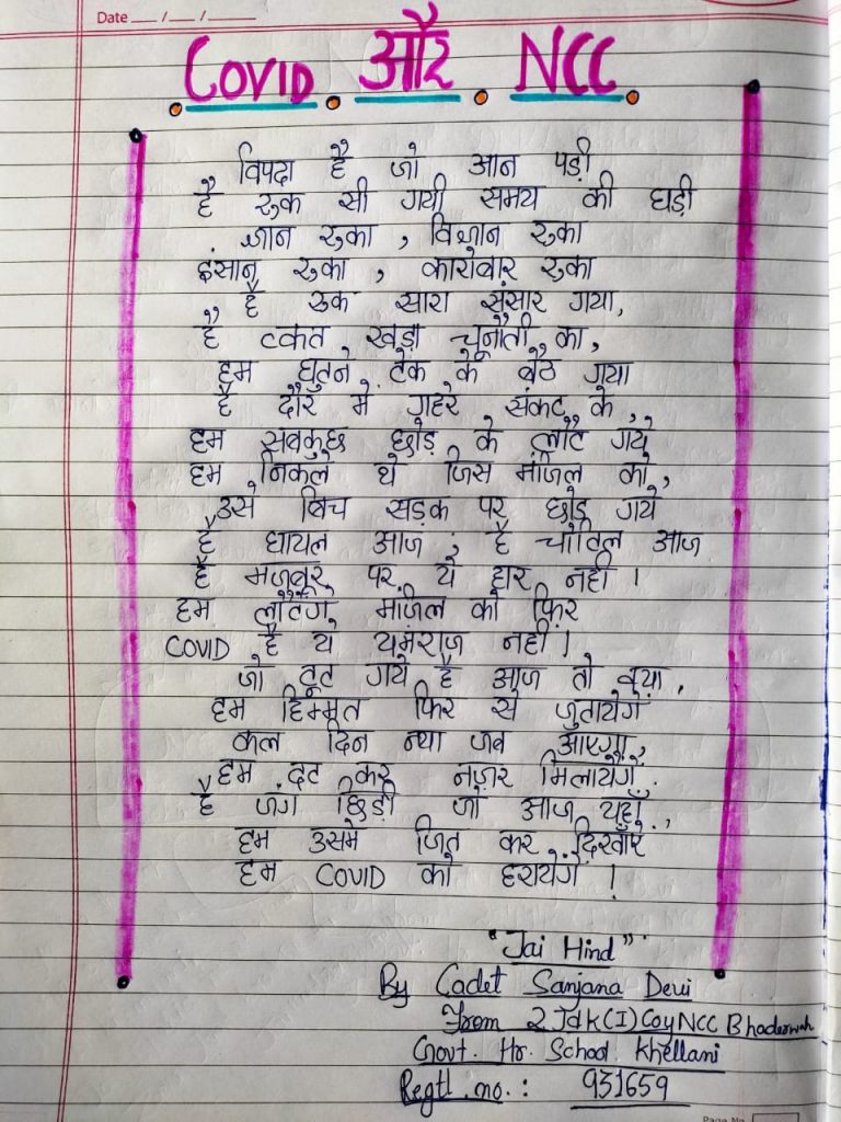 मैं कड़ेट अंजलि 3HAR(G)BN NCC,HISAR से आपके साथ पोडकास्ट का अनुभव साझा कर रही हूँ।