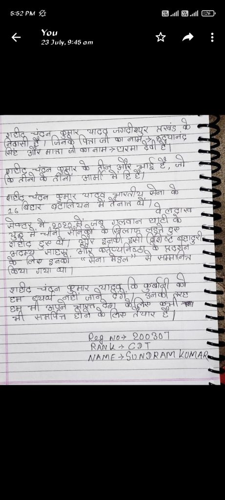 REG NO-BR19SDA200307 CADET-SUNDRAM KUMAR COLLEGE J. J COLLEGE ARA GROUP-GAYA GROUP