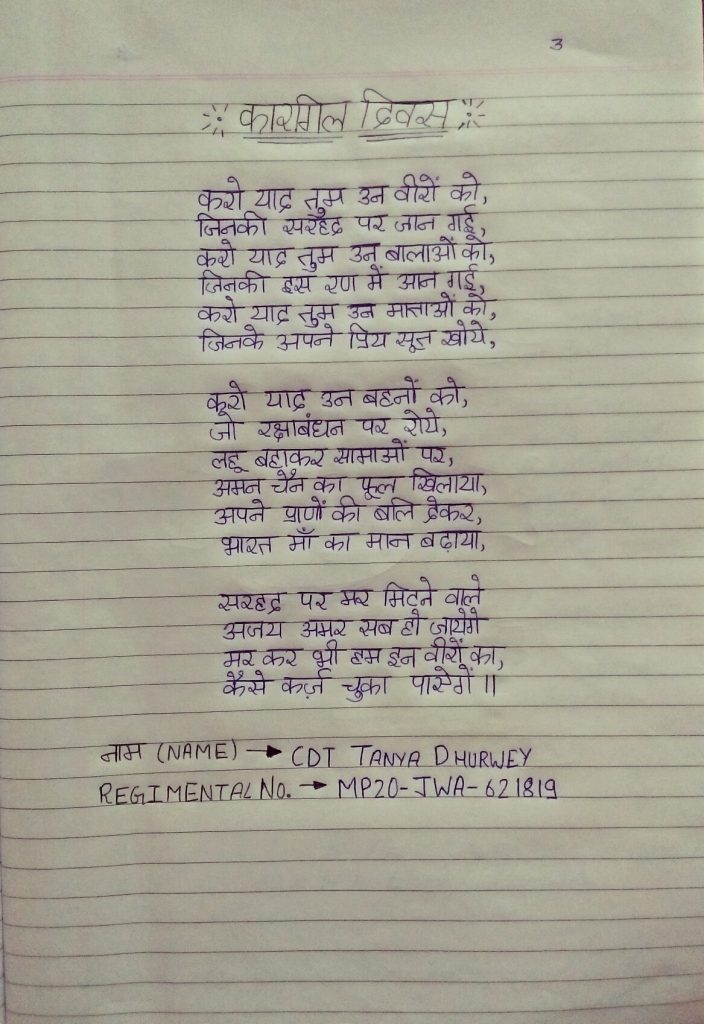 CDT Tanya Dhurwey.. Reg. No. MP20JWA621819