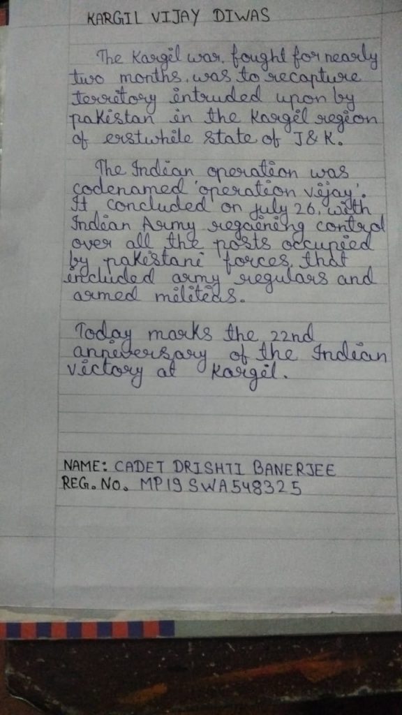 I cdt.Samruddhi Boite cadet of 1Mah Arty Bty NCC Kolhapur, shared an article on wars fought by India.