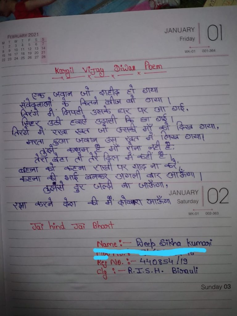 Nikhil Kaushik, a cadet of 5th Delhi battalion, Delhi DTE, is a resident of North East Delhi. He did his schooling from Govt. Sr. Sec. School, Tukhmirpur. Currently he is pursuing BA in SOL from KiroriMal College, Delhi Univ.