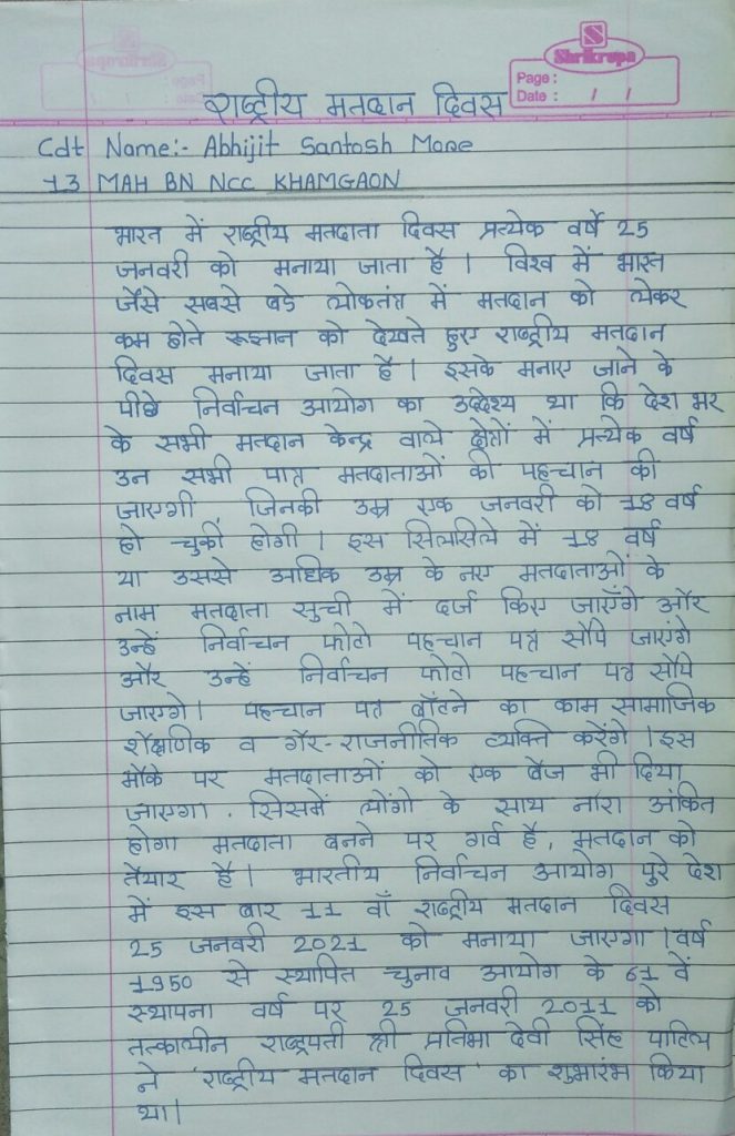 CPL.Abhijit Santosh More from shri shivaji college chikhli 13 MAH BN NCC KHAMGAON. 25 January is a rashtriya matdan din.