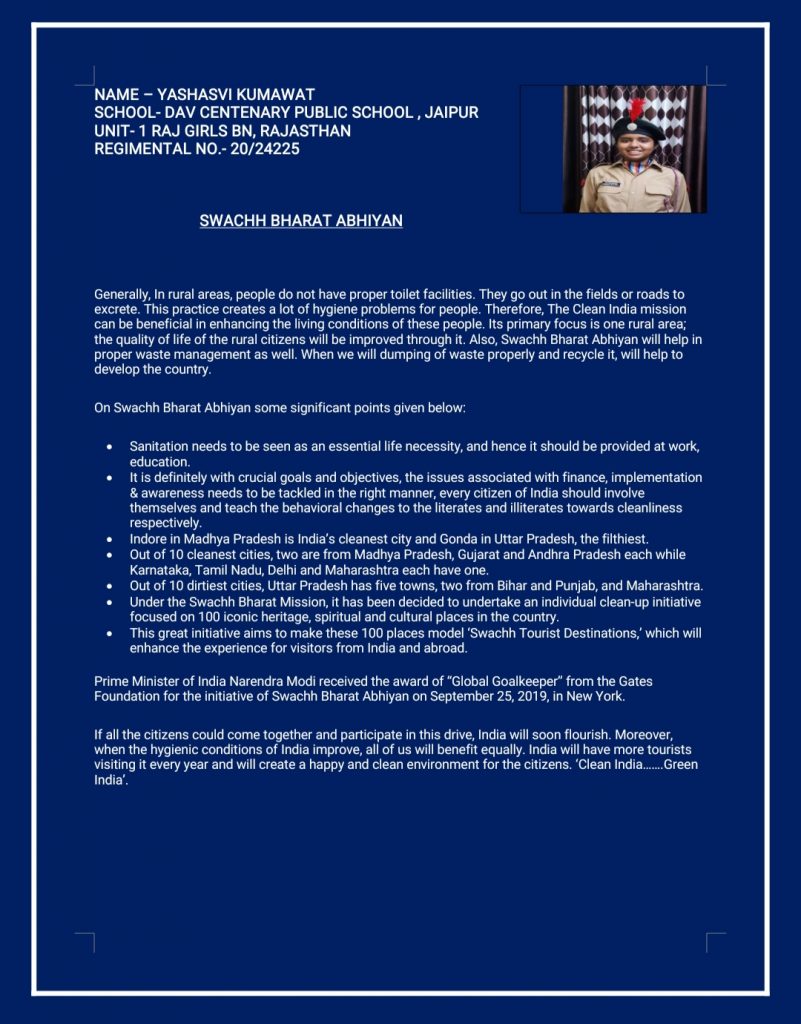 By:Cdt.Anisha Pareek RJ/19/SW/470059 1st raj R&V sqn ncc Bikaner