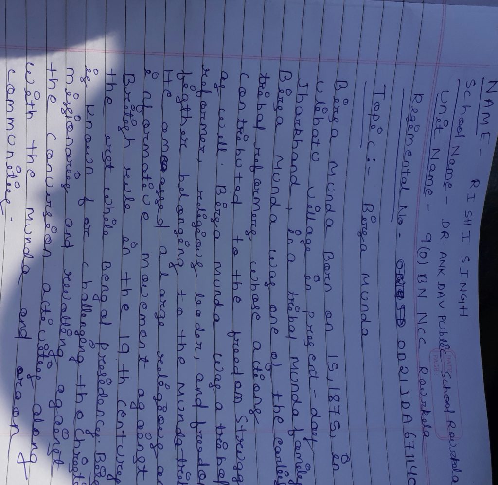 Cdt- Tanmayee Gracy Ekka. OD21JWA672068 9(O) BN NCC, ROURKELA Nirmala English School, Rajgangpur