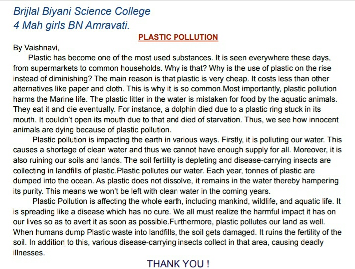 Name : Cdt. Vaishnavi Vinod Ingale Reg.No : MAH/SWA/19/310731 College : Brijlal Biyani Science College, Amravati.