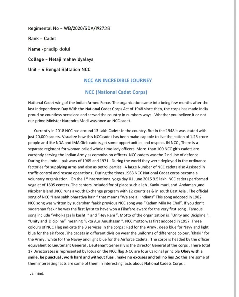 Article writing on NCC