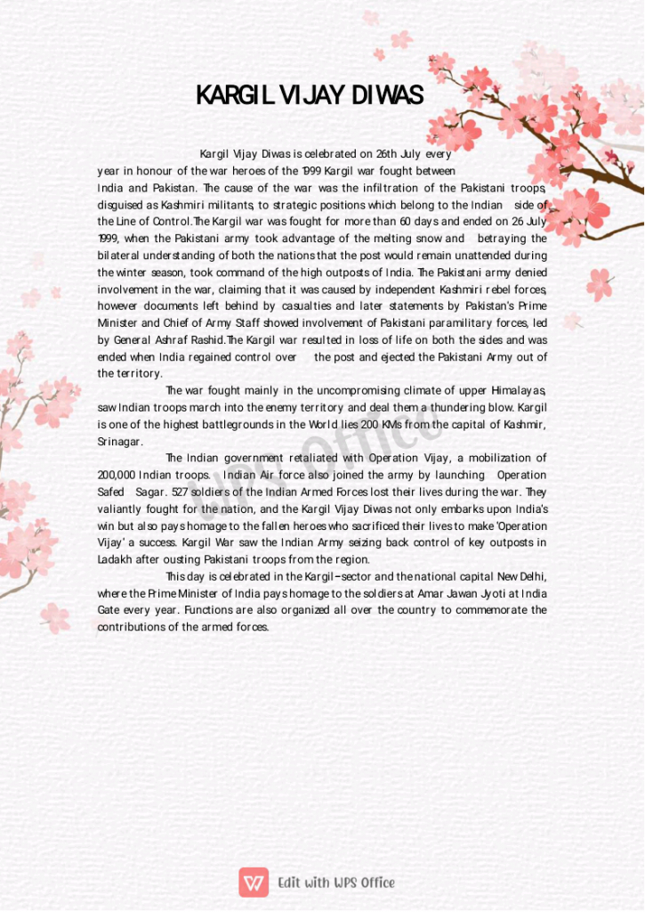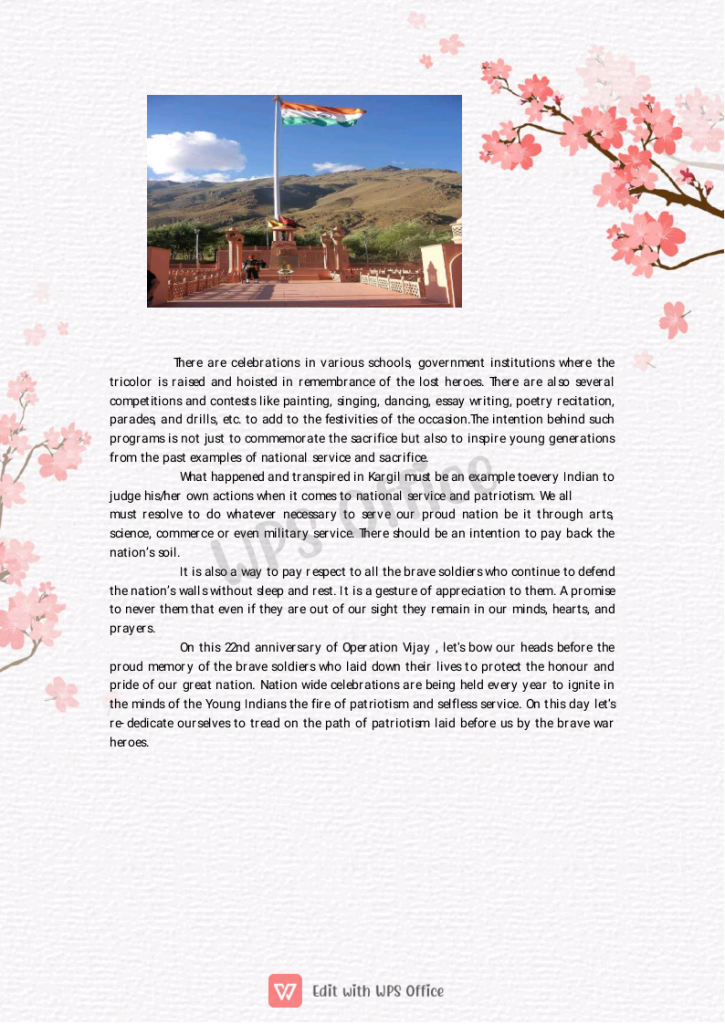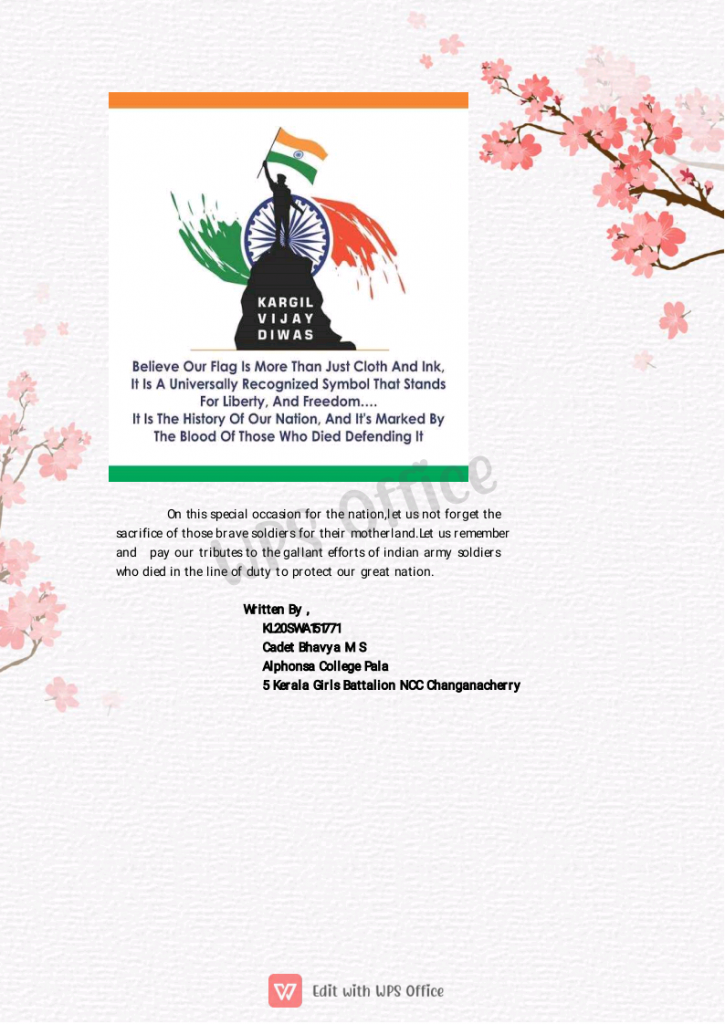 Cdt Bhavya Nambiar Reg No.- MP/20/SWA/104701 Institute for Excellence in Higher Education 4 MP BN BHOPAL GROUP MP&CG DTE Poster on Kargil Vijay Diwas