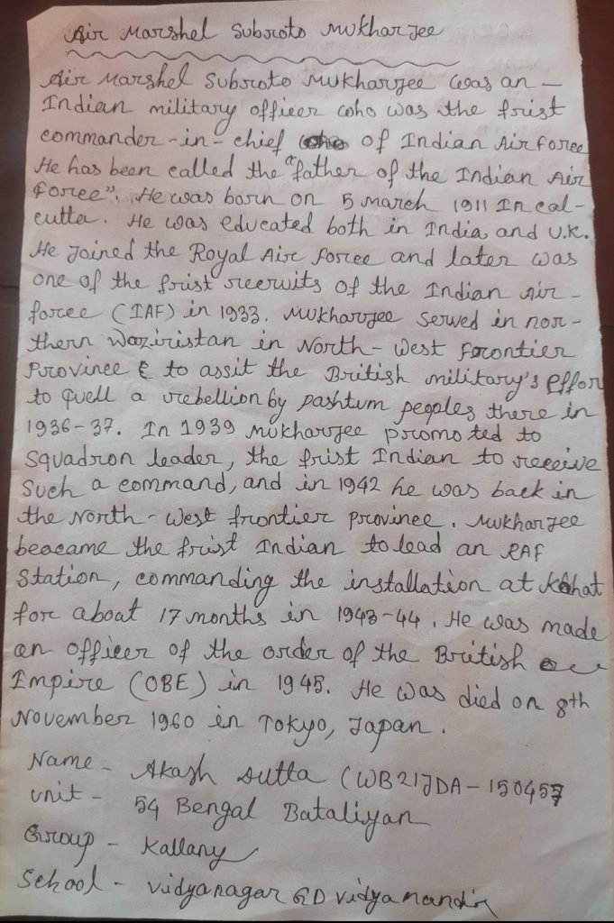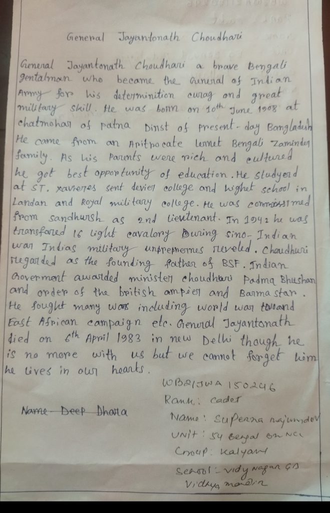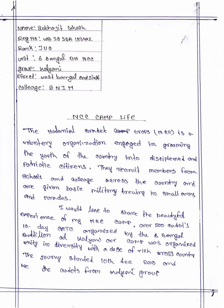 REGT NO:- WB20SDA153402, RANK:- JUO, NAME:-SUBHAJIT GHOSH, INST:- SAHEED NURUL ISLAM MAHAVIDYALYA, UNIT:- 6 BENGAL BN NCC, GROUP:- KALYANI, WB&SIKKIM.