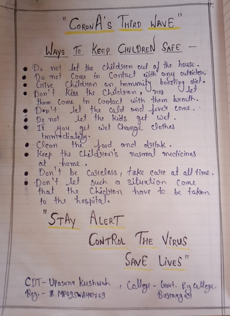 CDT - Upasana Kushwah, Unit - 21mp ncc bn Ratlam Follow this rules and healthy and safe you and your family life .