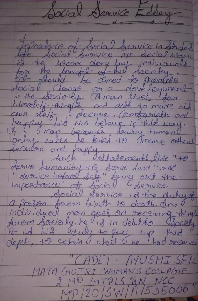 Name: JUO Purva Bhambure Reg no: MH19SWA934006 Clg name :SIR PARSHURAMBHAU COLLEGE, PUNE Coy: SMART CHARLIE BN: 36 MAHARASHTRA BN HQ: PUNE GROUP Dte: MAHARASHTRA