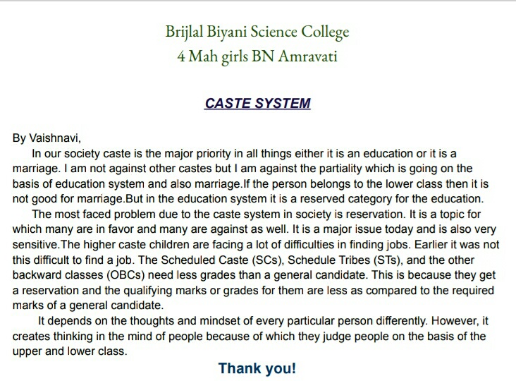 Name : Cdt. Vaishanvi Vinod Ingale Reg.No : MAH/SWA/19/310731 College : Brijlal Biyani Science College Amravati.