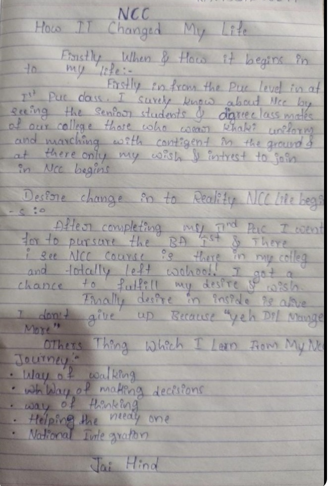 Name-soubhagya Jnaneshwar Gouda, RANK-CADET, Regimental No- KA19SWA552517, school- S V P kumta, Unit-29KARNCC, GPHQ-BELGAM, DTE-Karnataka& Goa