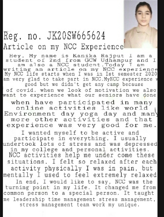 I cadet Kanika rajput in 2nd sem student bn and I am excited about this portiat that is initiated by the government to maintain direct communication with cadets
