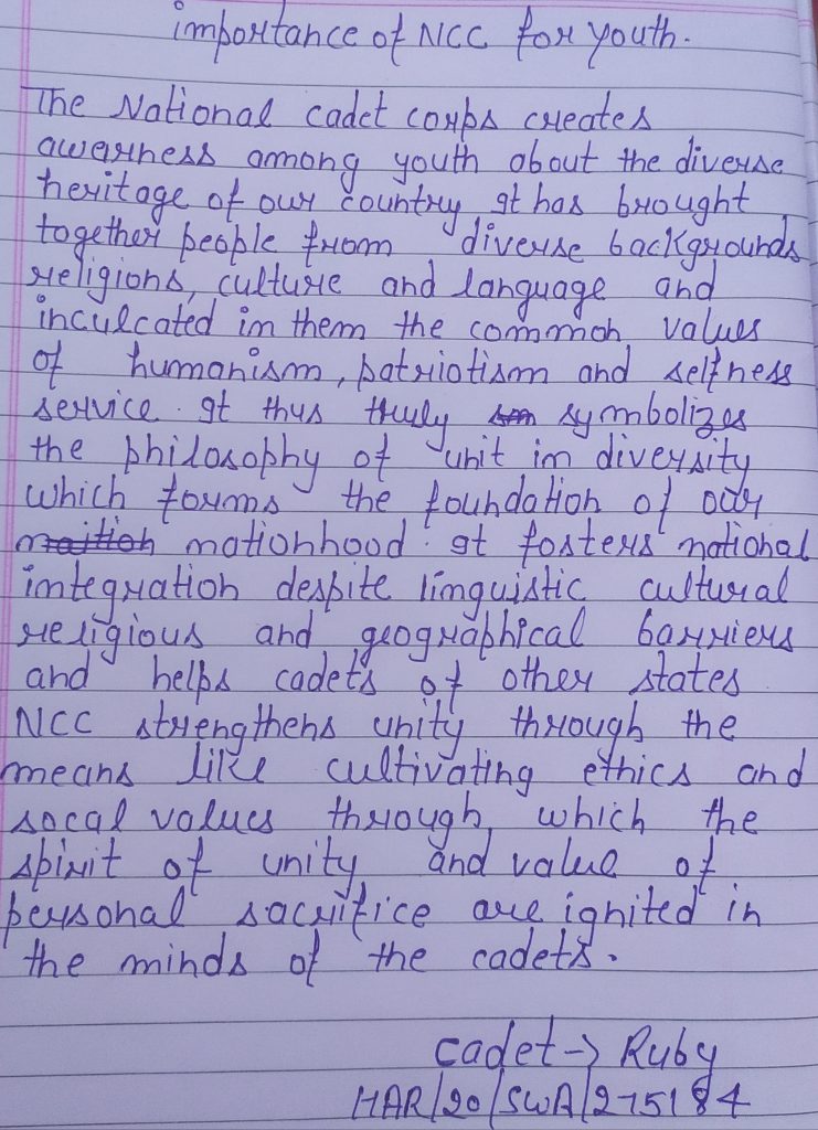 Cdt Priyanshi Sharma RJ/SW/19/550639 S.D. Govt. College Beawar 11 RAJ B.N. NCC AJMER