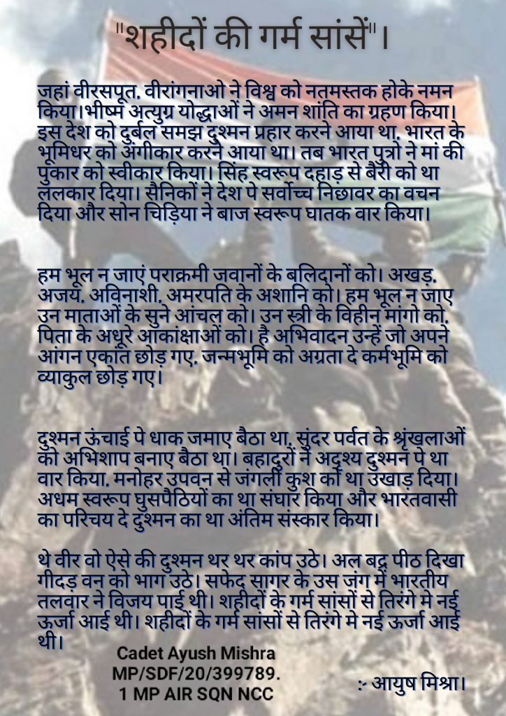 Poetry By Cadet Ayush Mishra on the occasion of 22nd Kargil Vijay Diwas.