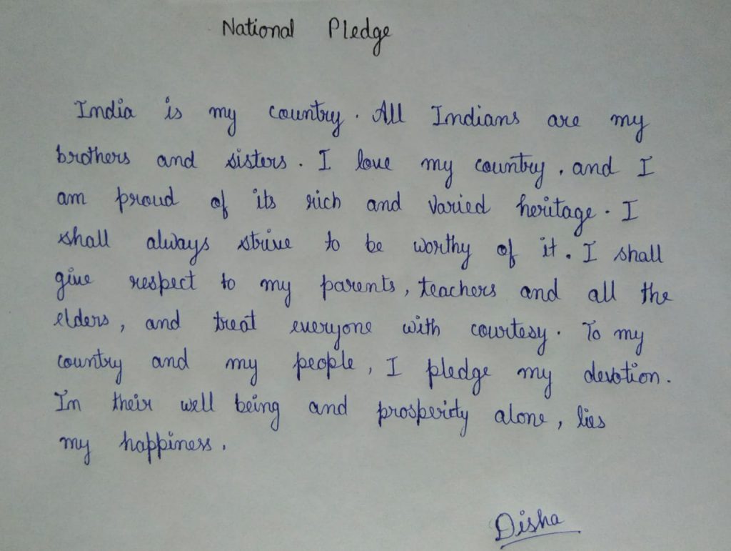 I,cdt Disha Kushwah take National Pledge on the occasion of 22nd Anniversary of Kargil Vijay Diwas.