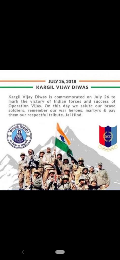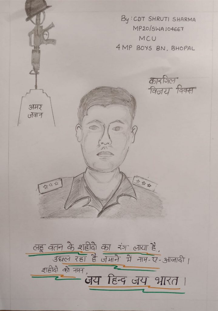 POSTER BY:- CDT SHRUTI SHARMA(MP20/SWA/104667), MCU, 4 MP BN BHOPAL, MP &CG DTE. POSTER ON:- KARGIL VIJAY DIWAS