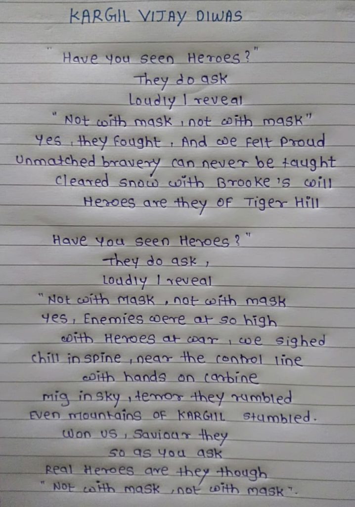 poster on kargil vijay diwas by Cdt Pragya Ganwani from No. 1 MP AIR SQN NCC INDORE (MP-CG)