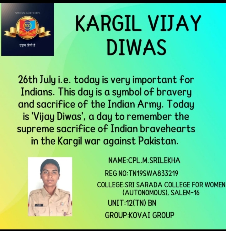 CPL.M.SRILEKHA FROM SRI SARDA COLLEGE FOR WOMEN (AUTONOMUS) SALEM. I HAVE SHARED MY ARTICLE ON A TOPIC OF KARGIL WAR 1999