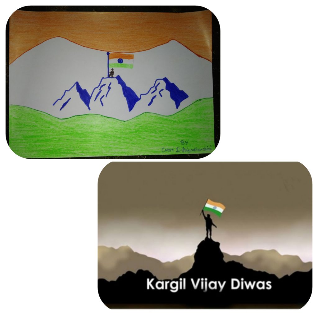 Poster on Kargil Vijay Diwas. I'm Cadet Munmi Gogoi. Rg No - AS19SWA 125513 unit - 63 Assam Girl's BN NCC Dibrugarh. College - Pithubar Girl's Degree College.