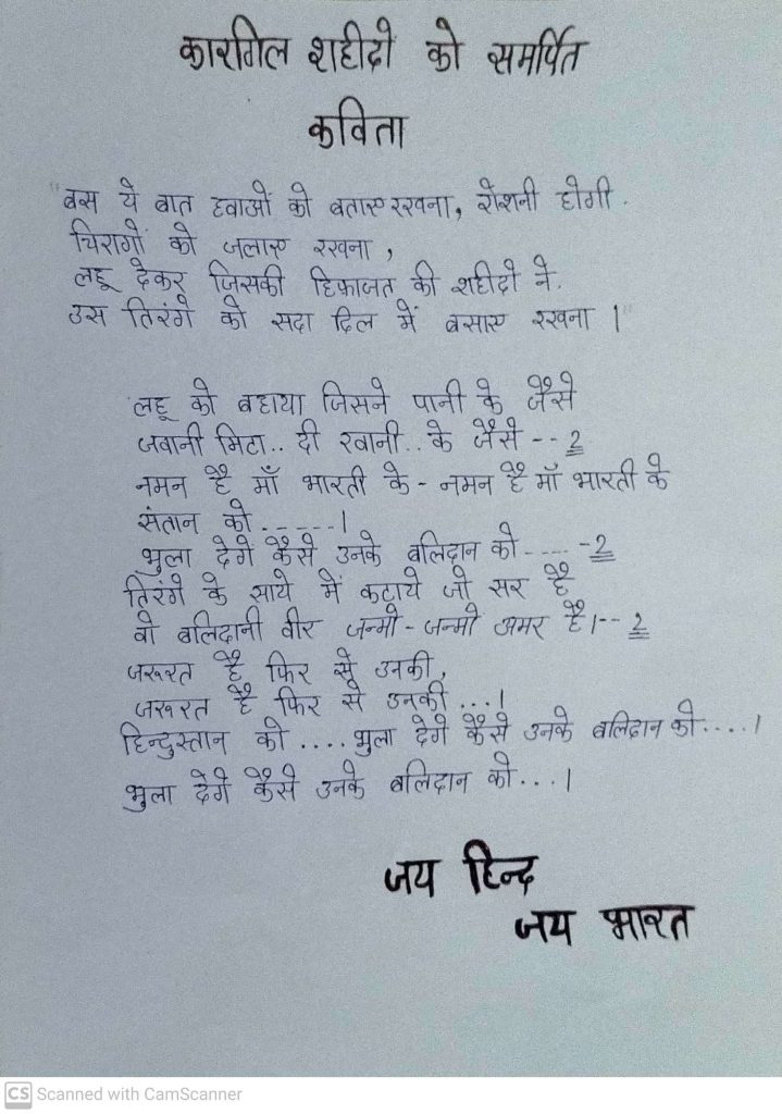 Regimental no. - MP20SWA/126702 Name- CDT. Sonam Singh Institute - People's University Unit- 4 MP Girls Bn. Group - Bhopal Group Directorate- MP & CG