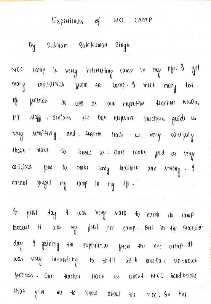 My name is Udit Sharma and I am a NCC cadet I am writing it for what changes came into my life