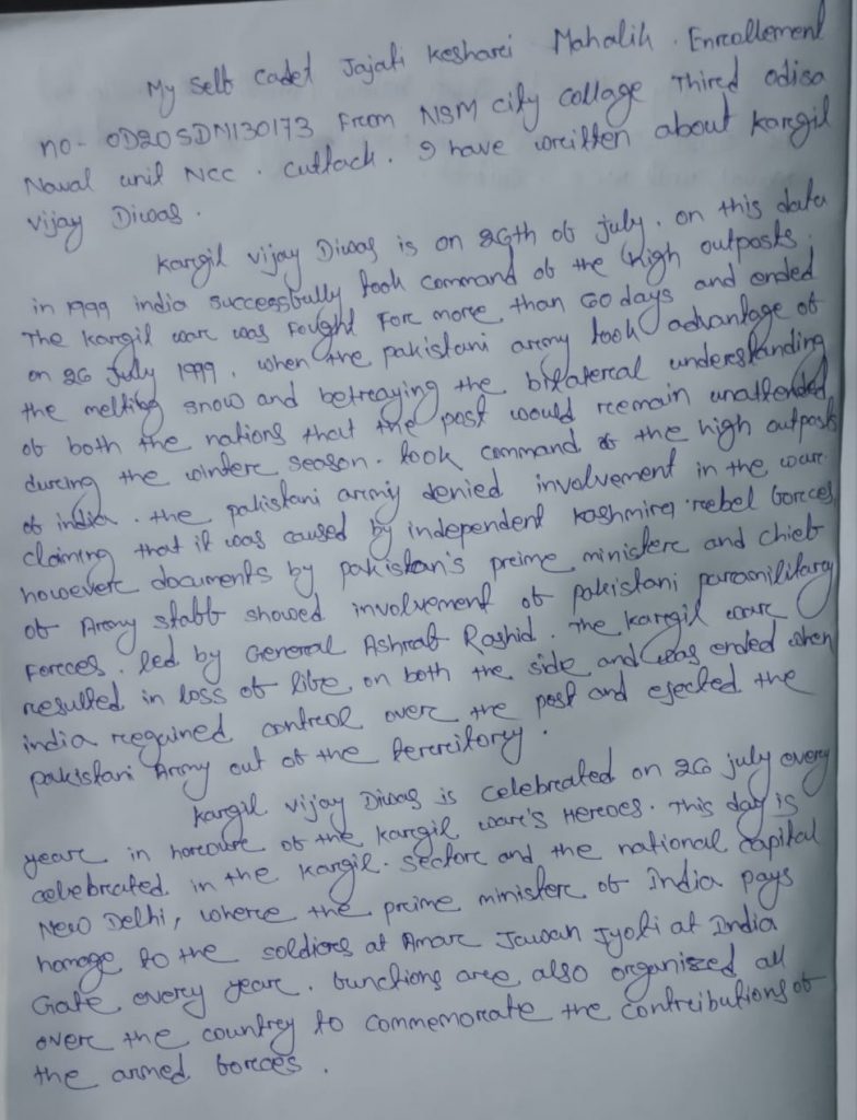 I am cadet Jajati Keshari Mahallick,Regt no-OD20SDN130173 from NSM city Collage,3(O)Naval Unit,Odisha