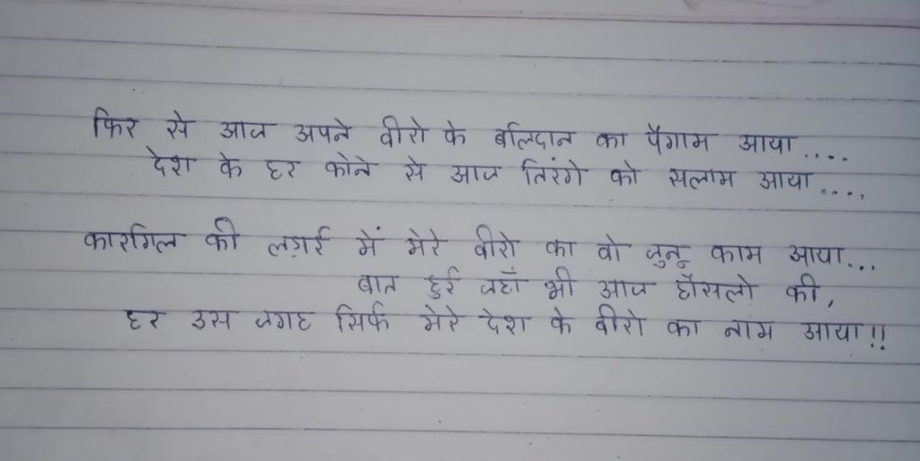 By celebrating the 22nd year of Kargil Vijay Diwas, One of our Cadet wrote a poem on Kargil War.