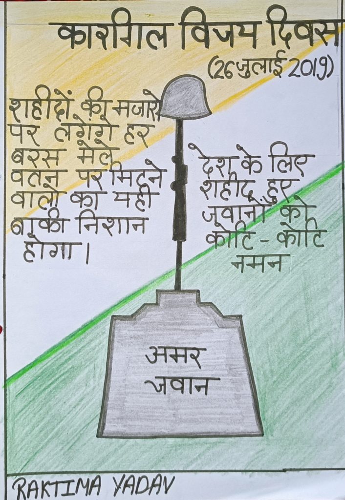 Jai Hind. I am Cdt Chitra Ganesh of Sri Sathya Sai college for women, 4 MP GIRLS BN bhopal grp Regimental number- MP19/SWA/126546 had made poster on Kargil Vijay diwas.