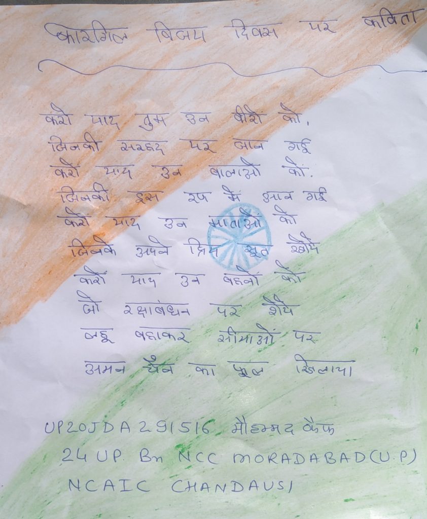 NCAIC chandausi Kargil Vijay diwas with all cadet and ANO Rajiv kumar