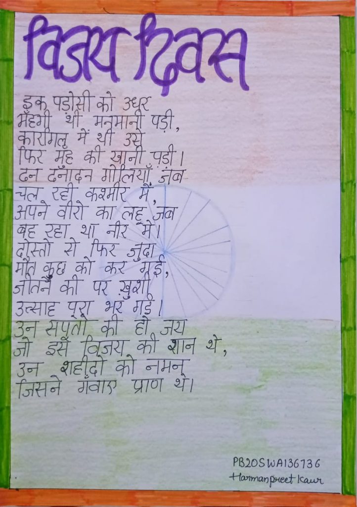 Cdt Shraddha Pateriya has written a poetry on" KARGIL VICTORY"??