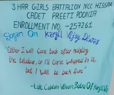 Slogan on kargil vijay diwas by cadet preeti Poonia