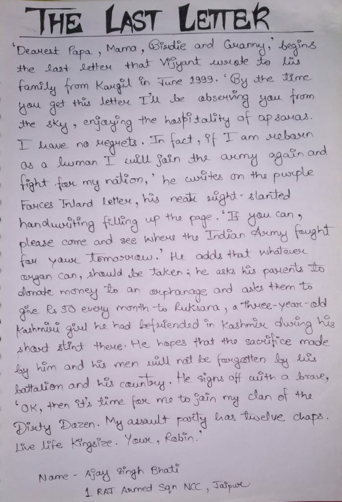 Cdt Sandhavi Singh 63 Assam G Bn NCC A POEM ON KARGIL VIJAY DIWAS