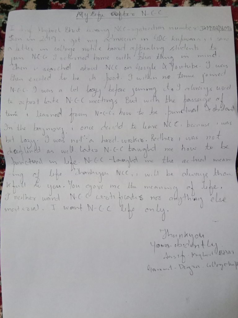 Name-Akash Debnath Reg no.AS18SDA112352 College-Dhing College Unit-8 Assam BN NCC Group-Tezpur DTE-NER