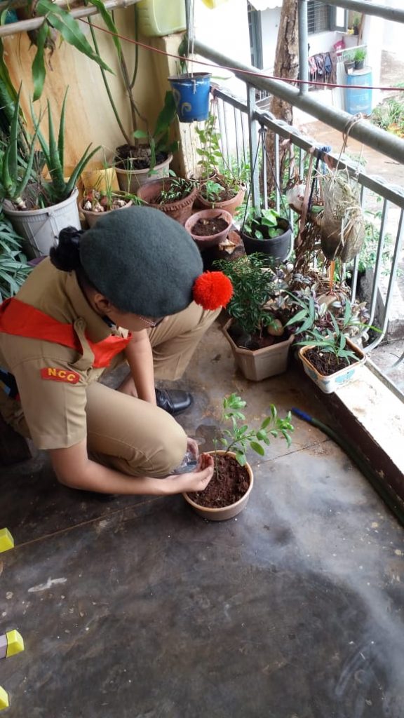 I Vaishnavi Manojkumar Jangam a cadet of 1 Mah Girls battalion NCC, am uploading a picture of tree plantation pakhwada.