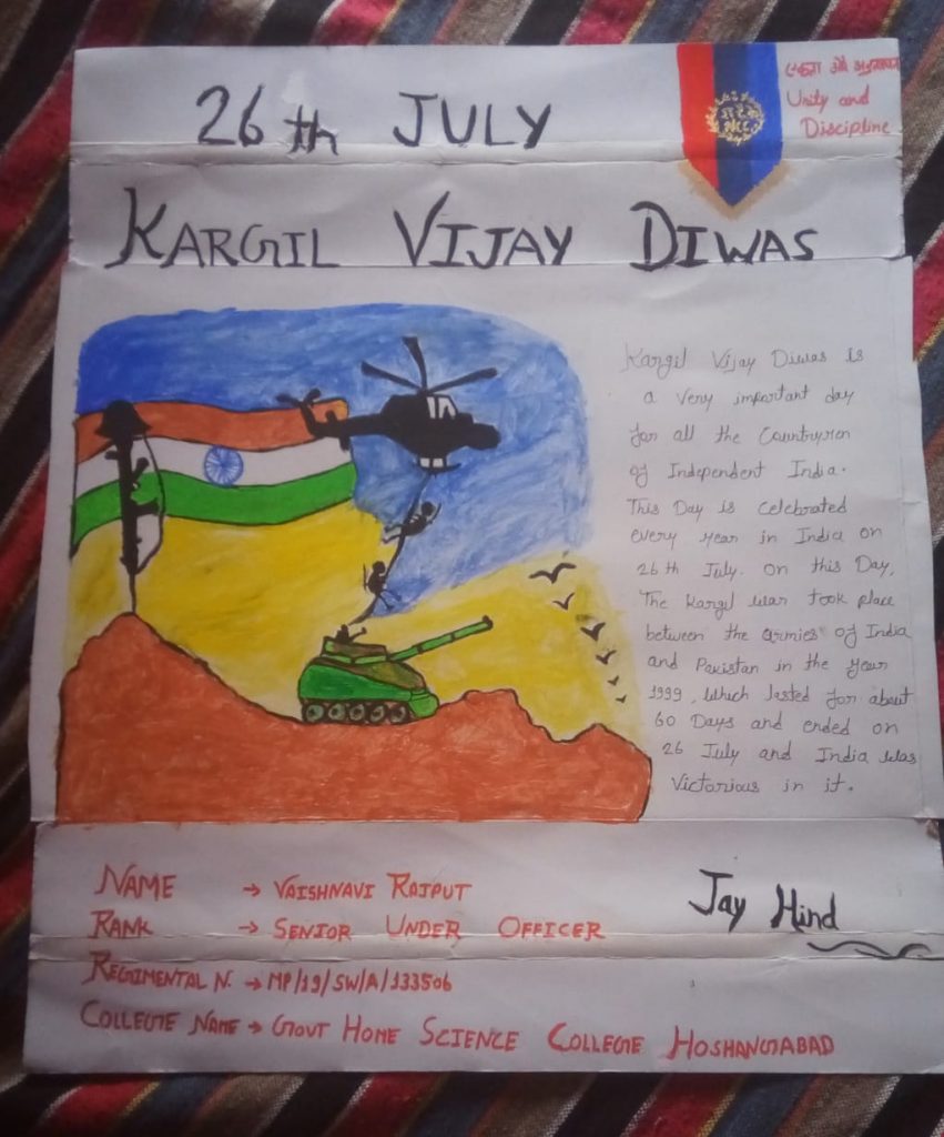 Name - Vaishnavi Rajput Rank - senior under office Unit. - 5mp Girl battalion Hoshangabad College name - govt home science college Hoshangabad