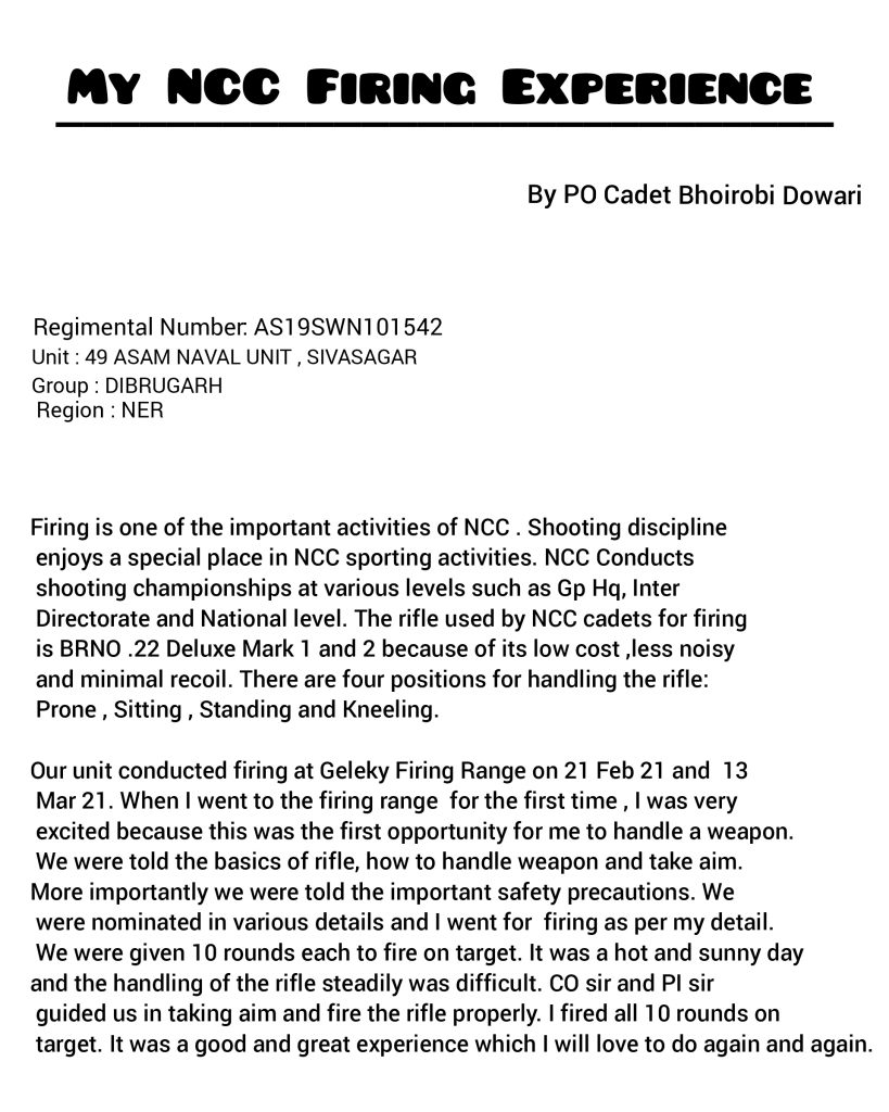 I'm cadet Monuranjan Das. Unit :- 9Assam BN. Ncc, Jorhat. College :-DKD college.