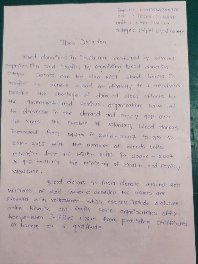 REGT. MH19SDA300776 CDT. TEJAS DHARMENDRA DAVE UNIT. 3 MAH SIG COY COLLAGE. BRIJLAL BIYANI SCIENCE COLLEGE