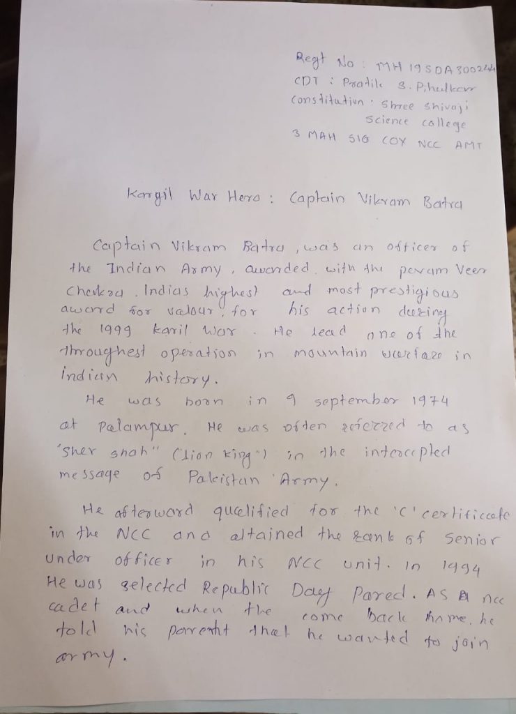MH19SDA300244 Constitution. Shree shivaji Science college Amravati 3 MAH SIG COY NCC AMT Name. Cdt. Pratik S. Pihulkar