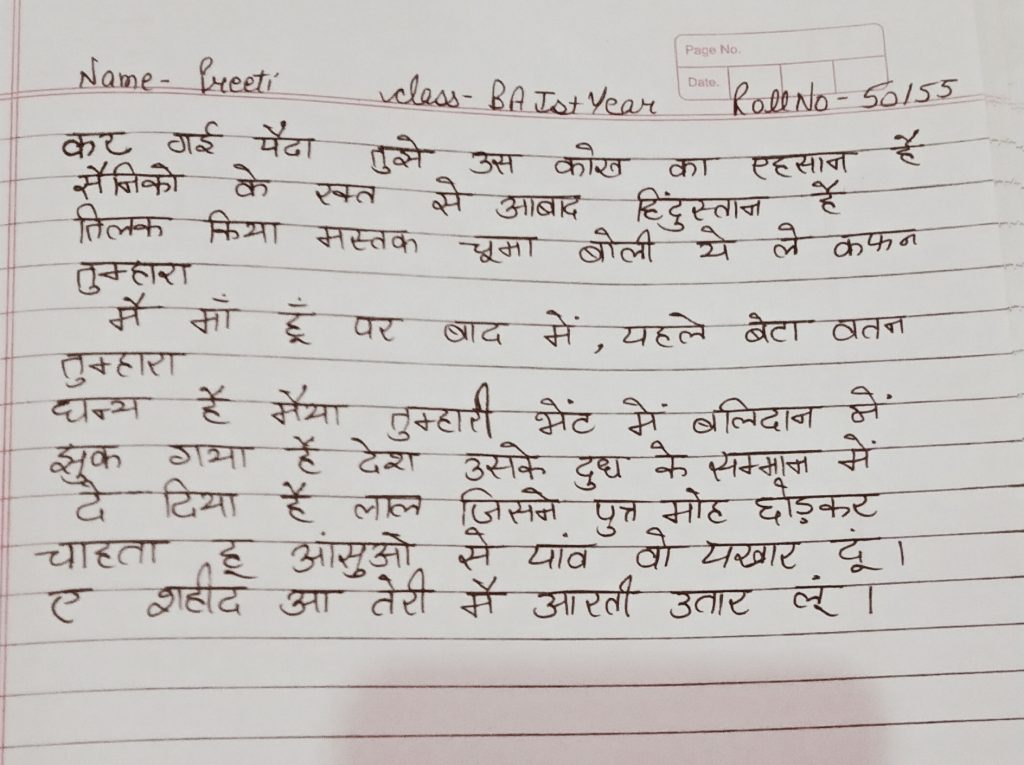 JAI hind. I am Cadet Preeti 3 HAR (G) BN NCC HISAR of Rohtak Group of the PHHP &C DTE. I want to share my point of view on topic "KARGIL DAY"