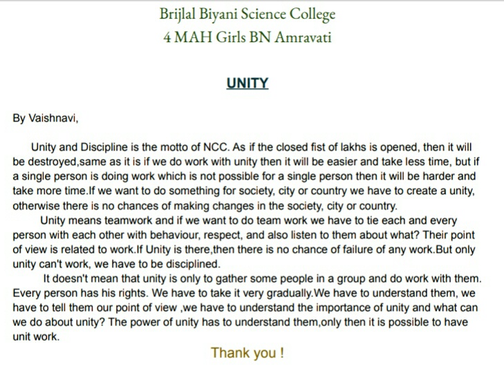 Name- Anjali chauhan College name- Govt. Jc mill girls college Unit name- 3 mp never unit ncc gwalior