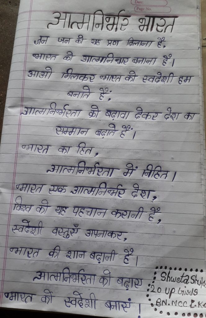 I cadet Shweta Shukla,studying in B.A 1st year,at Mahila Vidyalaya Degree collage,from 20 UP Girls BN Lucknow