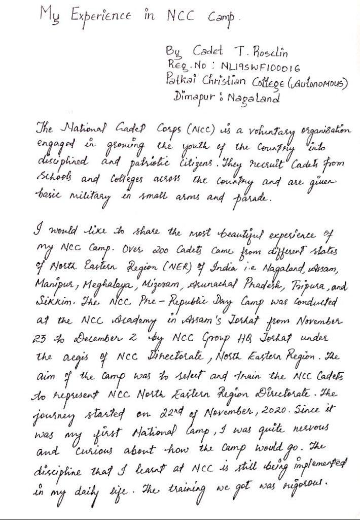 Cadet T Roselin No.1 Nagaland Air SQN NCC Dimapur :Nagaland Patkai Christian College Autonomous