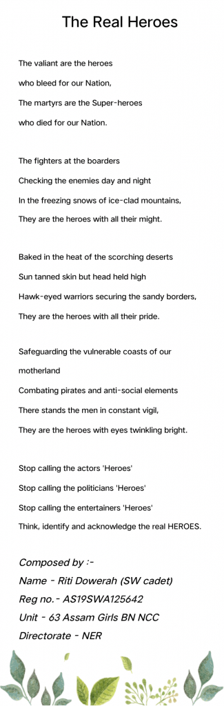 Riti Dowerah, 63 Assam Girls BN NCC, DDR College Chabua, NER Directorate.