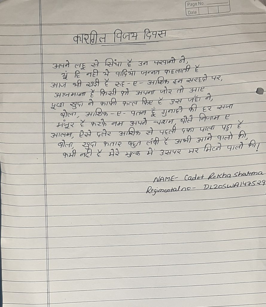 2DGBN Cadet Rekha sharma Regimental no - DL20SWA147529